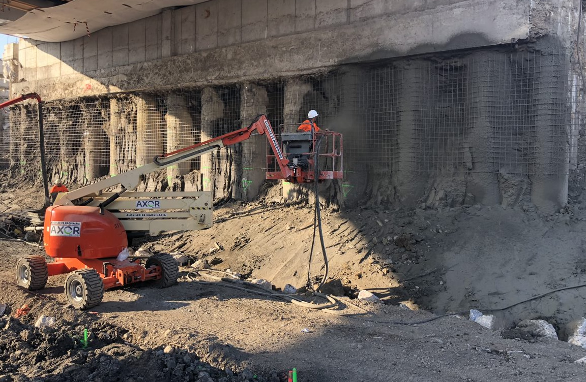 Sistema consistente en la proyección de hormigón mediante una manguera a alta velocidad. El objetivo es conseguir un muro continuo, con mayor resistencia y menor espesor, para soportar y contener la presión ejercida por el terreno y/o evitar la erosión.