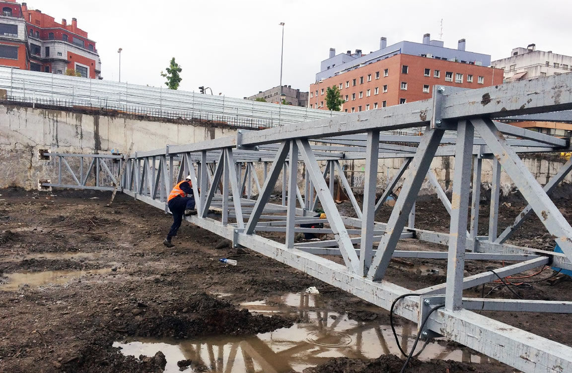 Un tipo de sostenimiento formado por elementos metálicos diseñados para soportar las acciones de compresión generadas en el sostenimiento de las contenciones.
